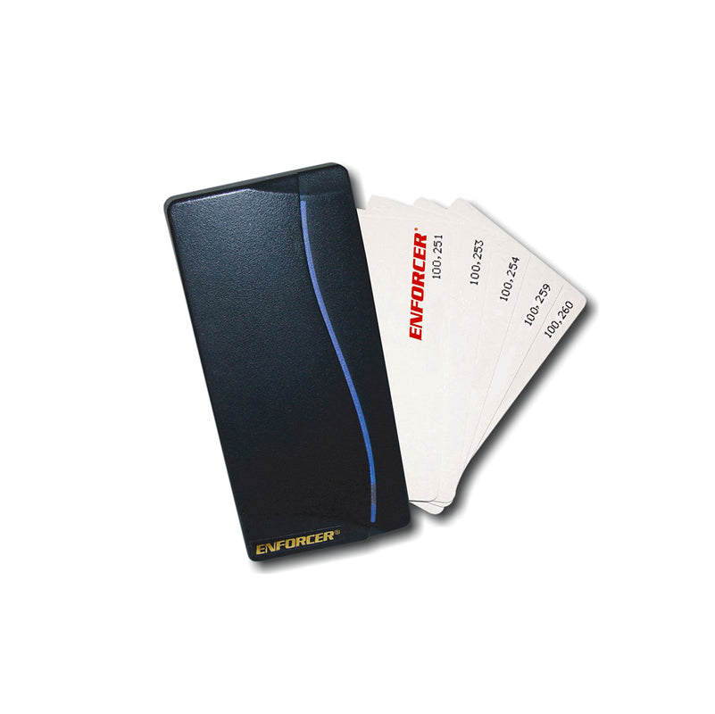 El lector de proximidad autónomo ENFORCER representa una solución flexible para el acceso controlado. Su sofisticada caja y su tamaño pequeño lo hacen ideal para usarse en la mayoría de las decoraciones. La barra de estado con LED azul en forma de ola acentúa el diseño de la caja. El lector de proximidad autónomo SECO-LARM combina fácil instalación, rápida programación, y alta confiabilidad.